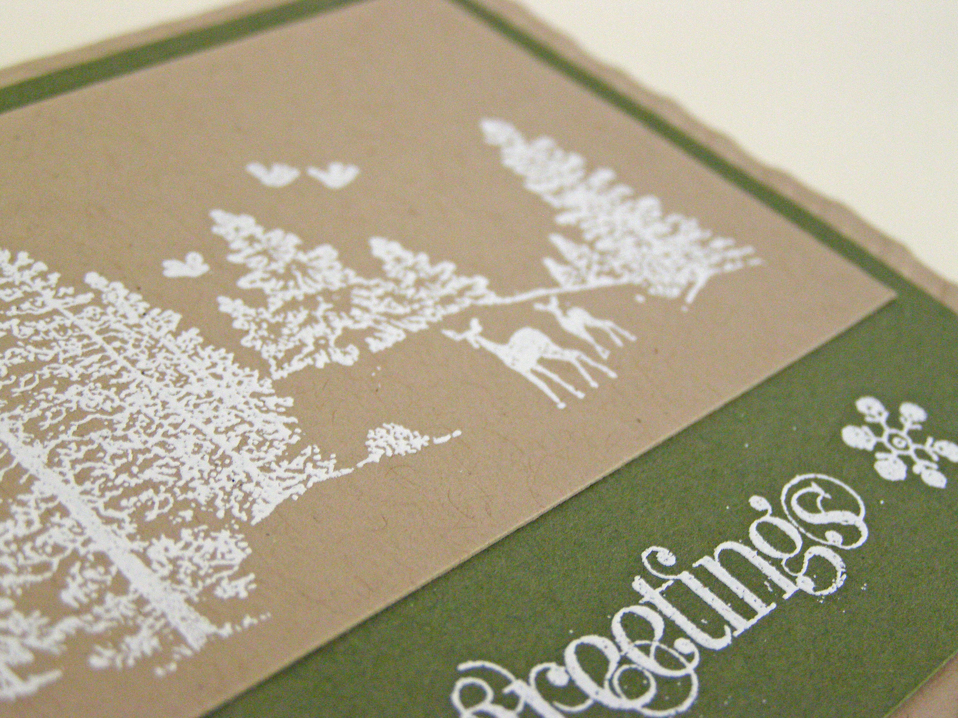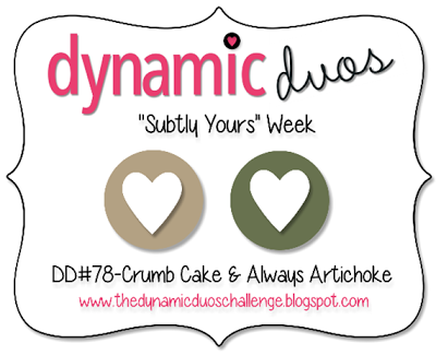 Hello! This week’s Dynamic Duos challenge colours inspired this card using the Hero Arts Winter Scene stamp which I’ve embossed onto Crumb Cake card. The photograph doesn’t really show it but this stamp gave a beautifully detailed image. I mounted it onto the Always Artichoke card with a Stampin Up greeting – and decided not to brush away the errant pieces of white embossing powder here, hoping they might add to a snowy effect ;).